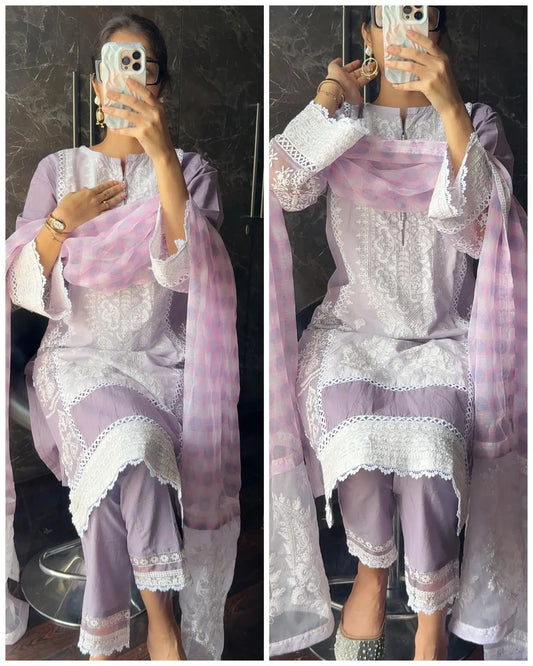 Cotton Pakistani Embroidery Dual Tone Suit – Lavender