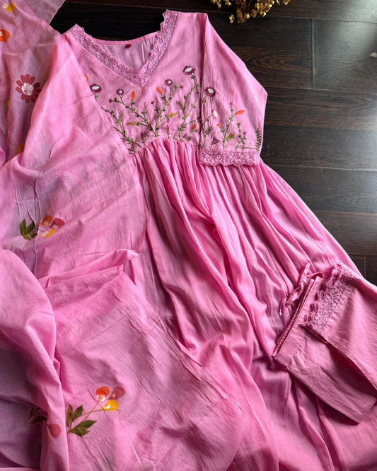 Mul Cotton Embroidered Suit- Pink