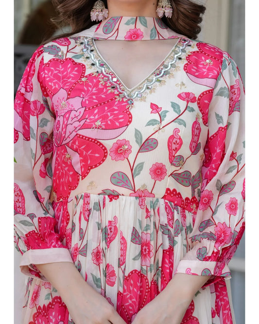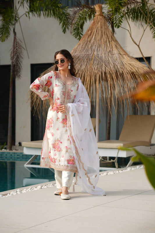 Pure Chinnon Floor Length Ivory Gown With Dupatta