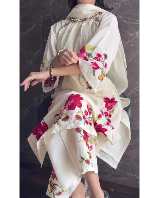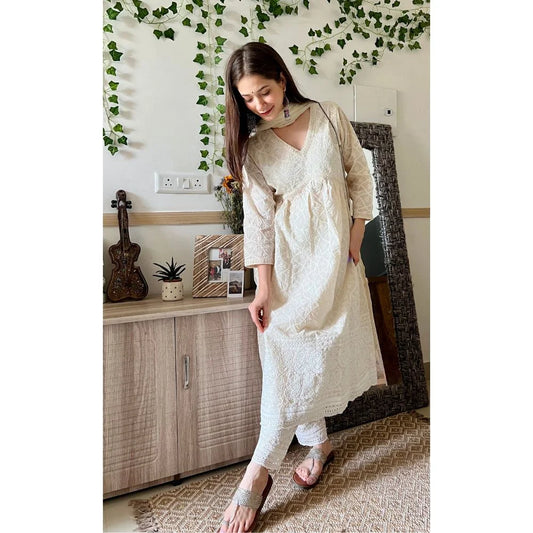 Premium Butter Soft Muslin Cotton Suit-IVORY