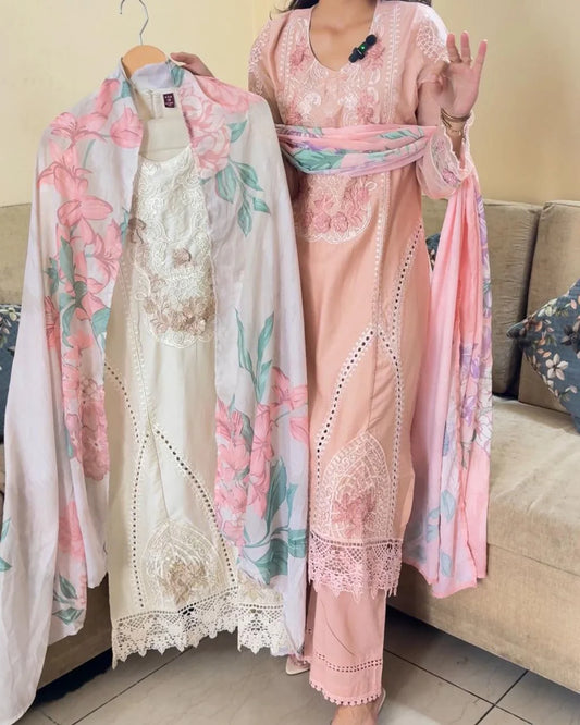 Pure Cotton Pakistani Embroidery Pastel Suit