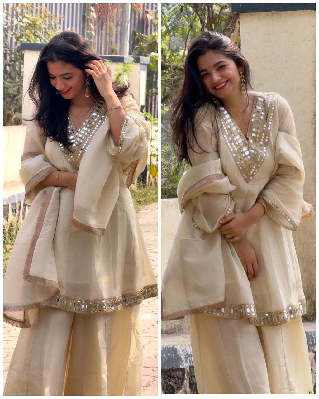 Premium Pure Tissue Mirror work Flared Bottom set