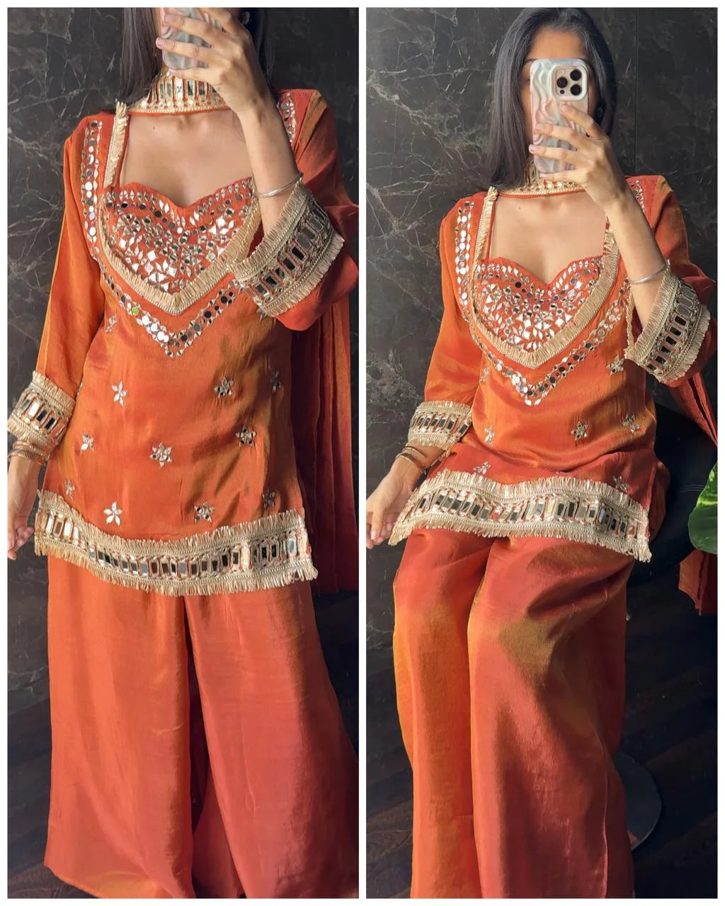 Premium Tissue 4-Piece Bustier Set –Rust Orange