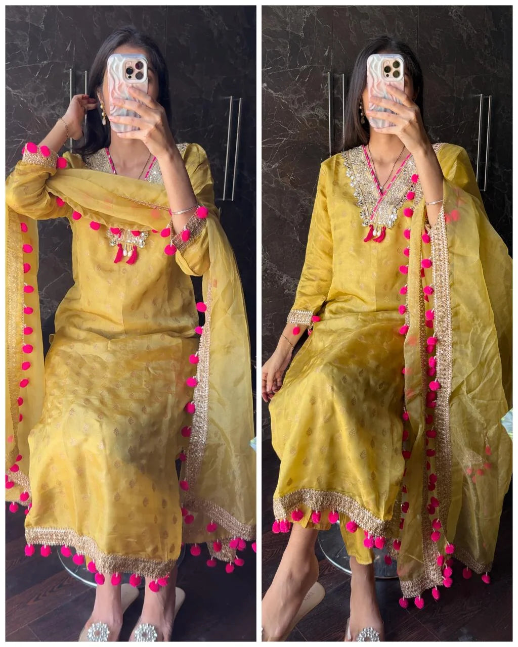 This premium tissue pom pom suit represents a refined approach to contemporary tailoring, engineered with superior fabric quality and precision construction. The luminous lime yellow hue provides a versatile canvas for curated styling, while the pom pom detailing demonstrates expert craftsmanship and design innovation. Constructed from breathable tissue material, the suit offers exceptional comfort without sacrificing structure or silhouette. The thoughtful integration of textural elements creates visual interest while maintaining the understated sophistication expected of discerning wardrobes. An investment piece that reflects technical excellence and sartorial knowledge.